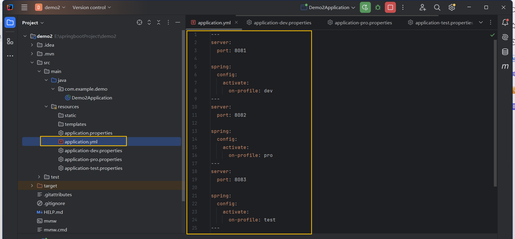 在开发spring boot项目时,通常一套程序会被安装在不同环境中,比如开发,测试,生产等,其中数据库地址,服务器端口等配置都不同,每次打包都要修改配置文件,非常麻烦,profile就是提供一种方法进行动态配置切换。