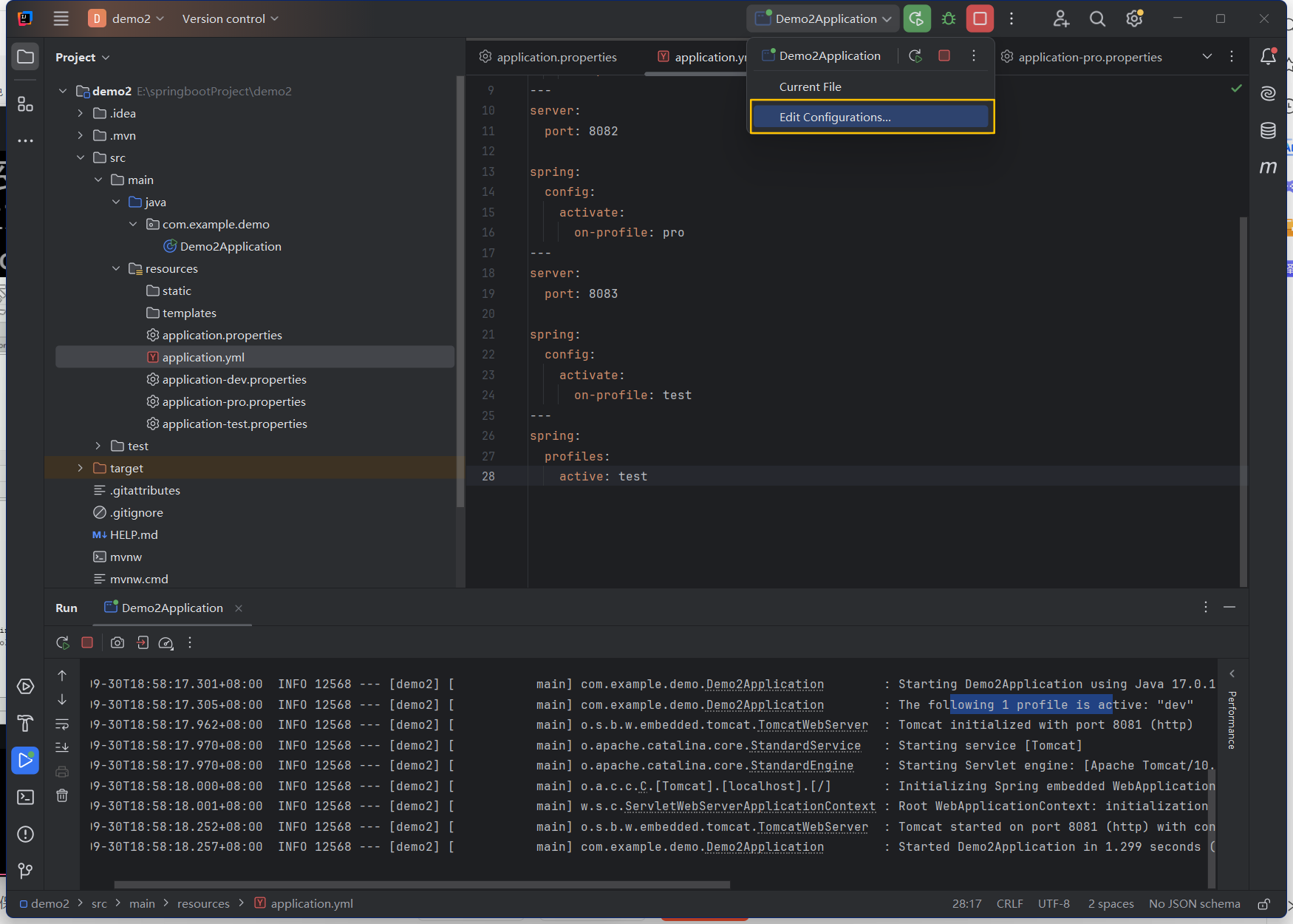 定义三个配置文件(三种环境)