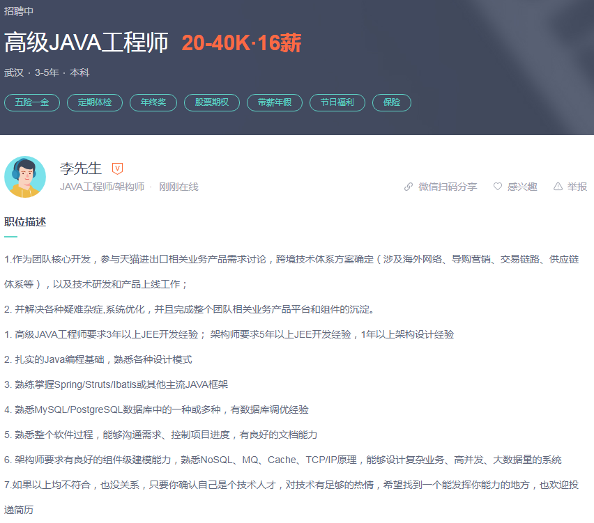 阿里某招聘网站Java岗位薪资以及职位描述(20K-40K-16薪)
