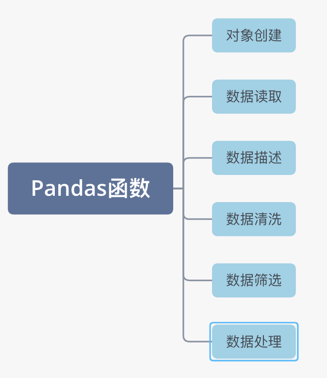 为了便于我们掌握,我们结合数据分析的流程和其内部函数的作用,将其分为以下几类,具体见下图。