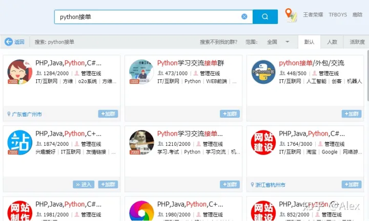 第一单是通过QQ群接的,当时我把自己的QQ昵称改成了 “python项目专业接单”,那段时间我加了上百个python相关的群,每天疯狂在群里发言。