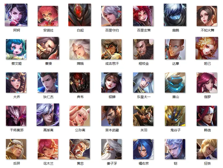 以上我们成功将王者荣耀的英雄人物头像爬取下来,代码文件中有高清头像。