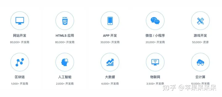 由上图我们可以看到,从网站建站、移动端 & 桌面 App 开发,再到数据分析、用户测试,应有尽有,只要你是从事软件专业的开发者,在上面就有你的一席之地。