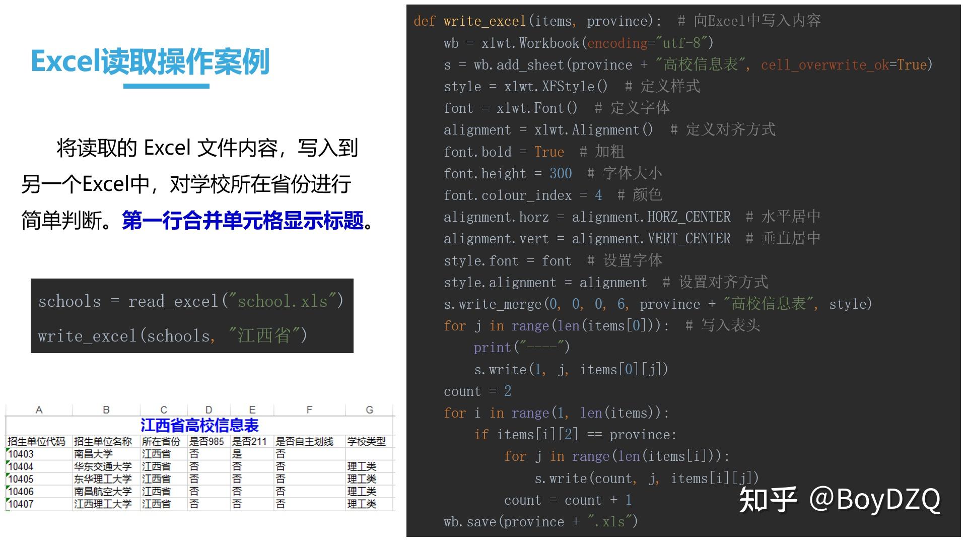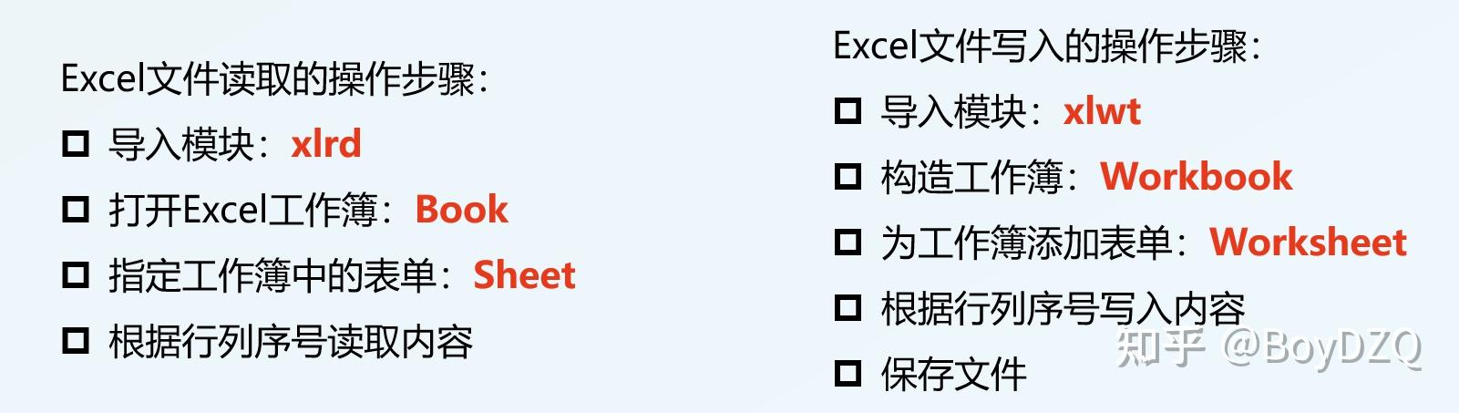 数据分析中经常会涉及到Excel文件的操作,Python官方发布版本中并没有提供读写excel文件的模块。需要安装第三方模块来实现对excel文件的读写。较为简单而又常用的第三方库为xlrd(读取Excel文件)、xlwt(向Excel文件中写入内容)。使用之前需要进行安装,最简单而又直接的安装方法就是直接在控制台执行:pip install xlrd、pip install xlwt。Excel文件的读取和写入的主要操作步骤如下:
