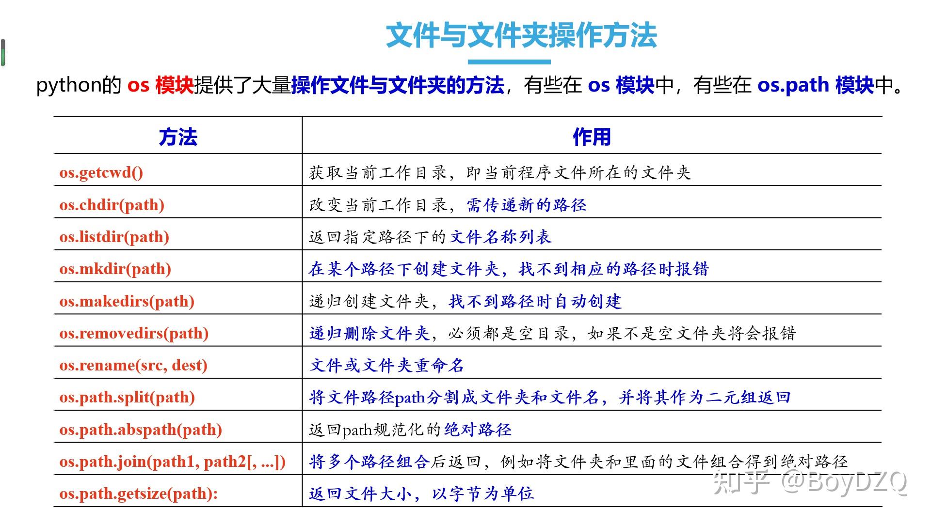 Python中提供了专门的模块对文件和文件夹进行操作,例如获取文件大小、获取文件路径、获取文件夹中所有文件等。主要涉及到os模块以及os.path模块。常见的文件和文件夹操作方法如下: