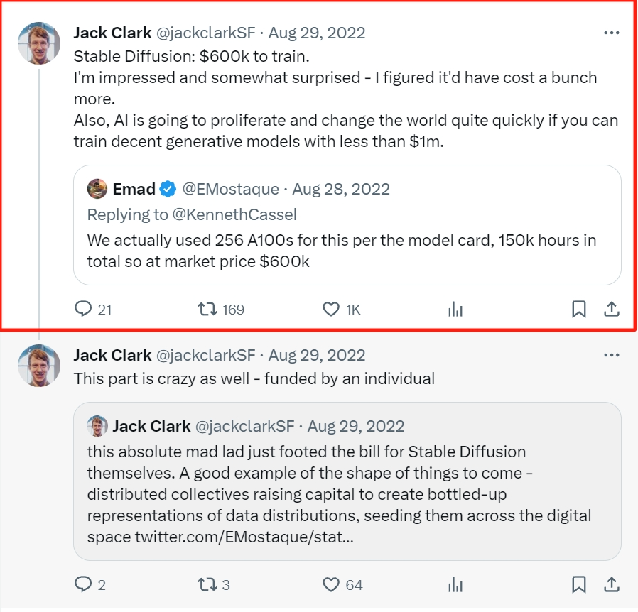 现在许多人手机上都有的GPT4训练成本已然超过了1亿美金,回过头看感觉Stable Diffusion还挺有性价比的。