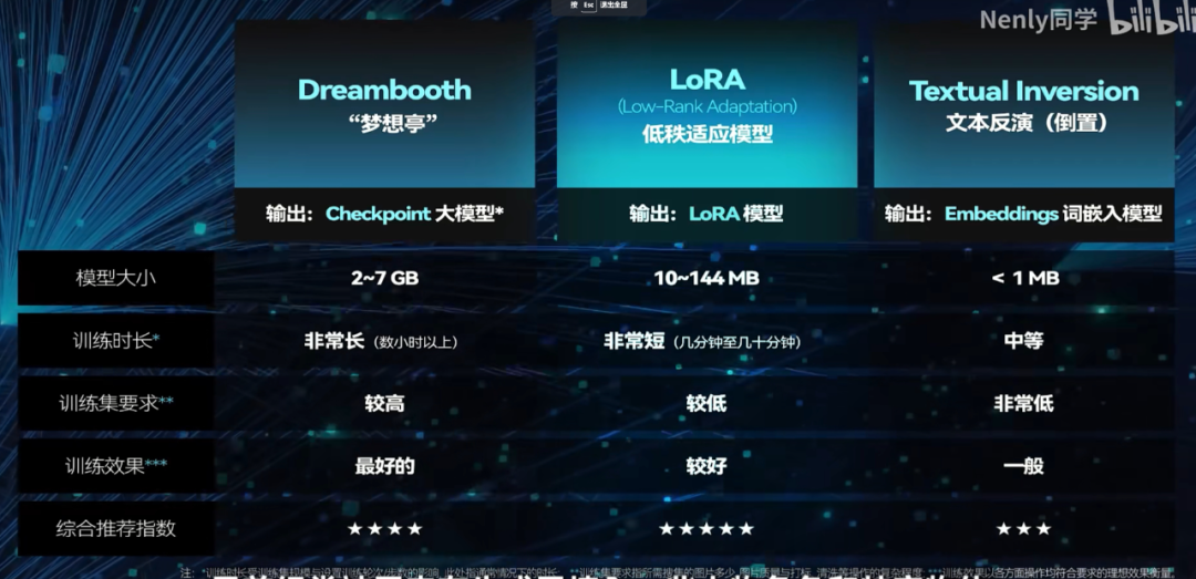 就目前的模型市场上看,还能发挥比较大作用的主流微调训练手法一共有三种:Dreambooth、LoRA(Low-Rank Adaptation)低秩(zhi)适应模型、Textual Inversion文本反演。