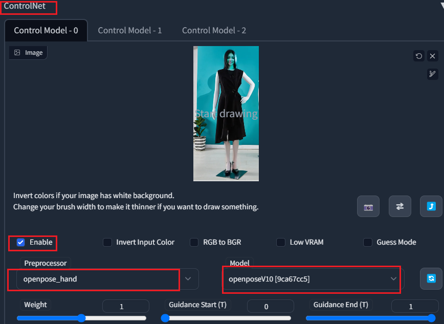 先使用img2img绘制除了手以外的地方,最后使用controNET–>openpose处理手指.