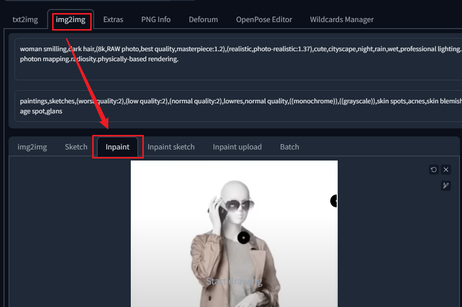 img2img–>inpaint