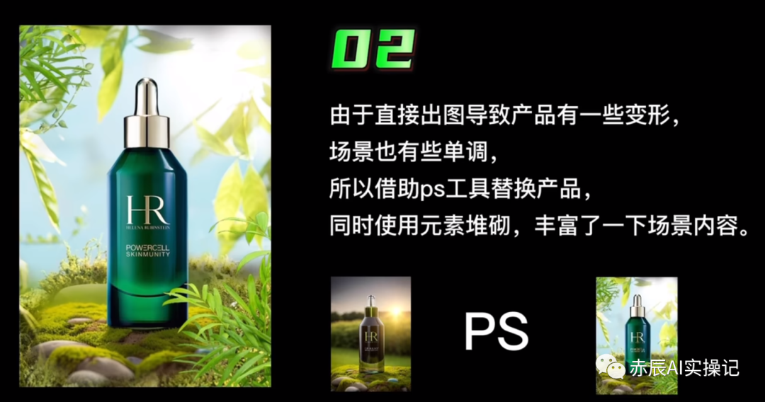 假如产品以及周围元素与我们预期的效果相差太大,这个时候需要借助PS进行修图,把刚才的产品图拿来进行替换掉。