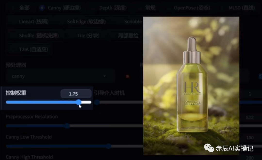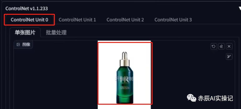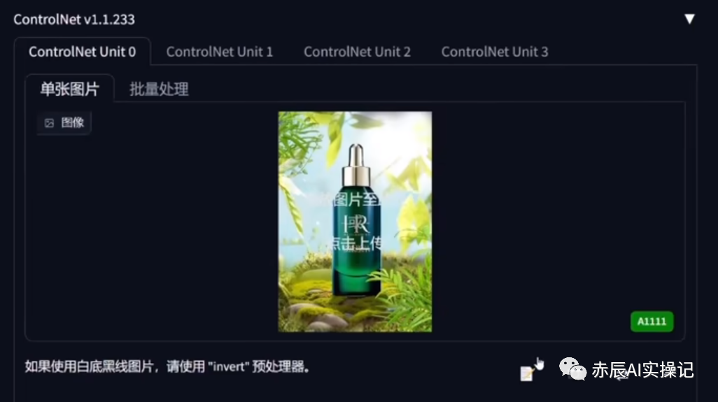 简单的说它的作用就是垫图,让stable diffusion按照样图的轮廓进行优化和创作,实现我们添加场景的目的,选择刚才抠好的产品图片,丢给Controlnet。