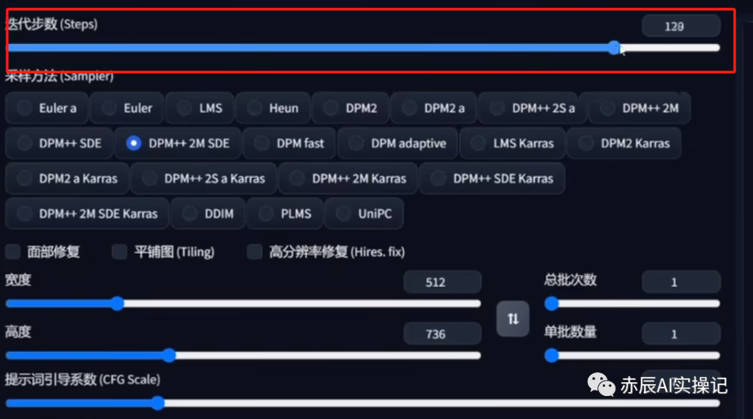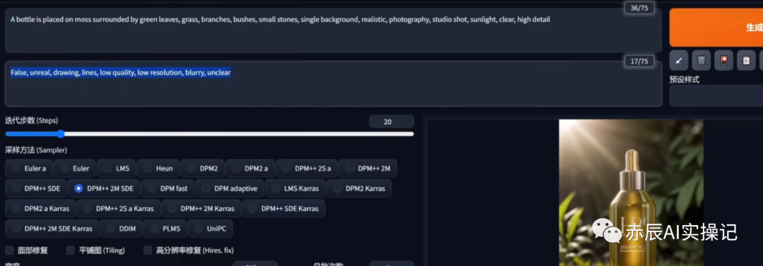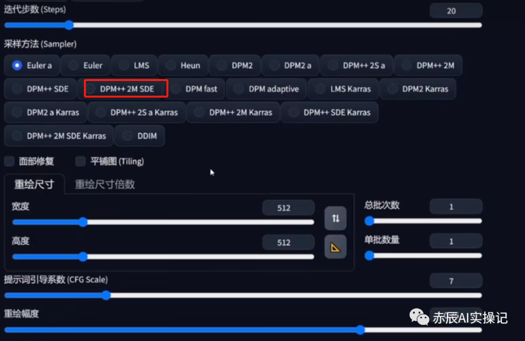 对于我们真实模型适合选择适合选择DPM++,以及karras这几个采样方法进行出图,这里可以选择选择DM++2M SDE。