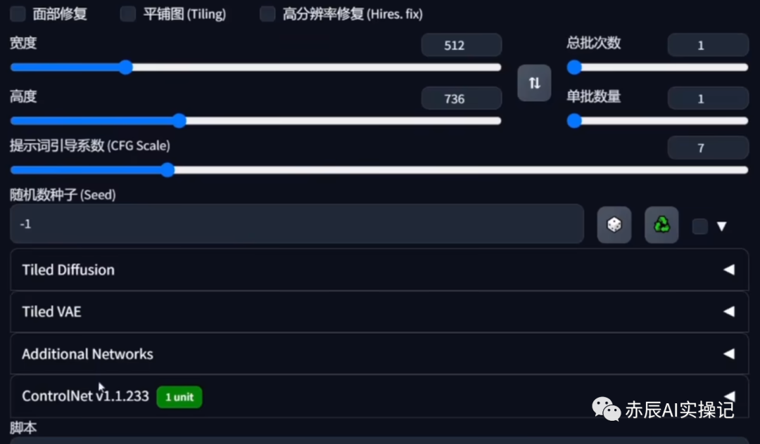 所以一般默认的二十左右就是我们常用的采样步数,迭代步数和采样方法之后,接着就需要使用Controlnet。