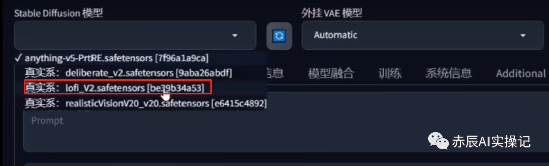 接着打开Stable diffusion,需要通过文生图形式做一个真实场景,所以这里选择写实模型。