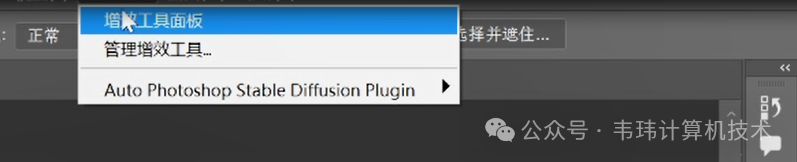 若安装成功,在PS的增效工具中,会出现Auto-Photoshop-StableDiffusion-Plugin选项。
