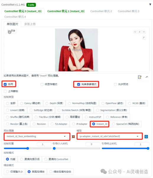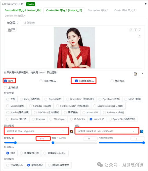 ControlNet单元1:上传人脸定位照上传任意一张照片,它的作用是控制最终出图的人物脸部位置。我们可以和第一张图片一样。