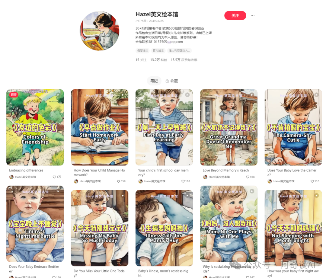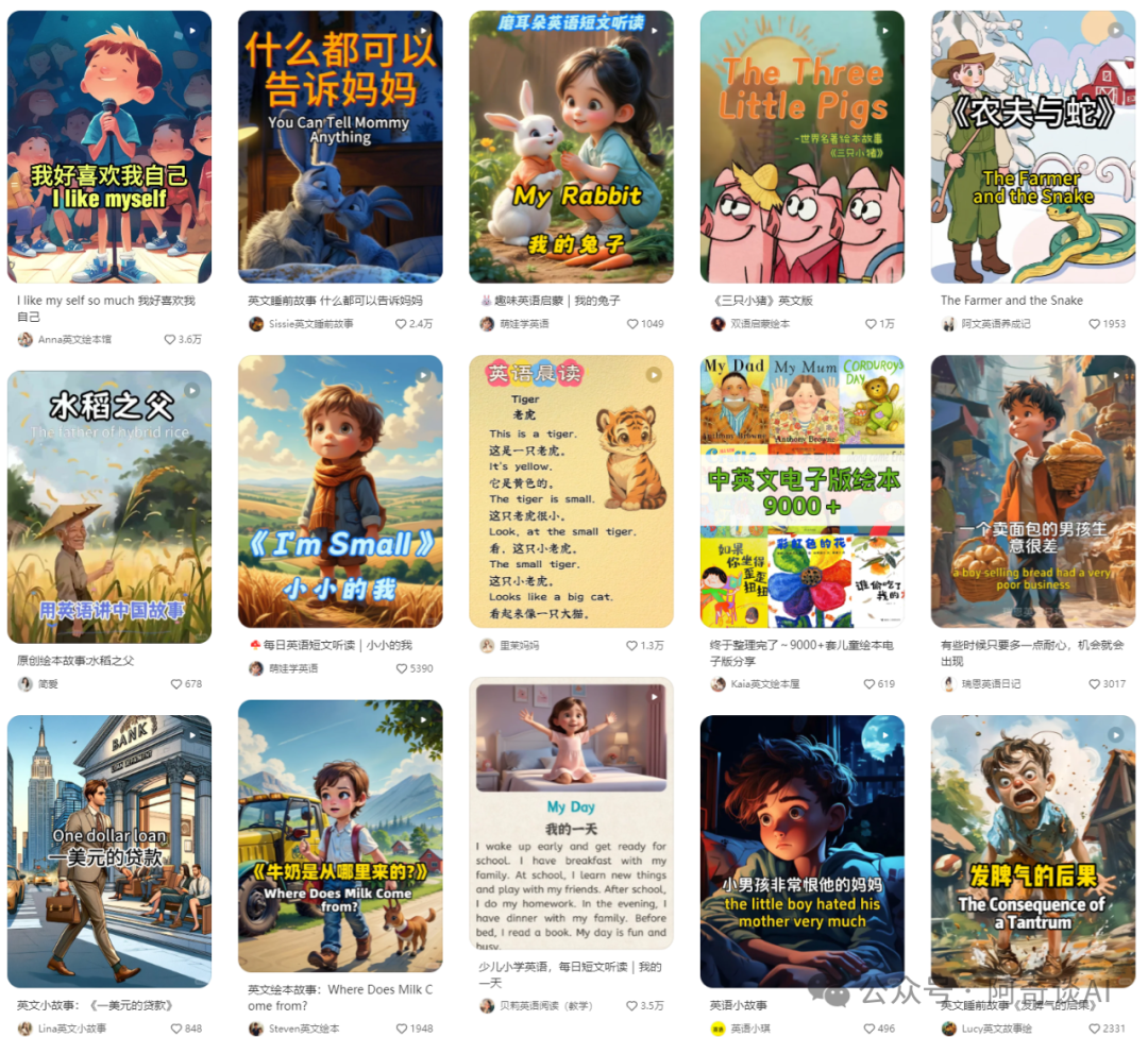 为了更直观地展示AI在英文故事绘本创作中的实际应用效果,我们选取了两位在小红书平台上取得显著成功的创作者进行案例分析。