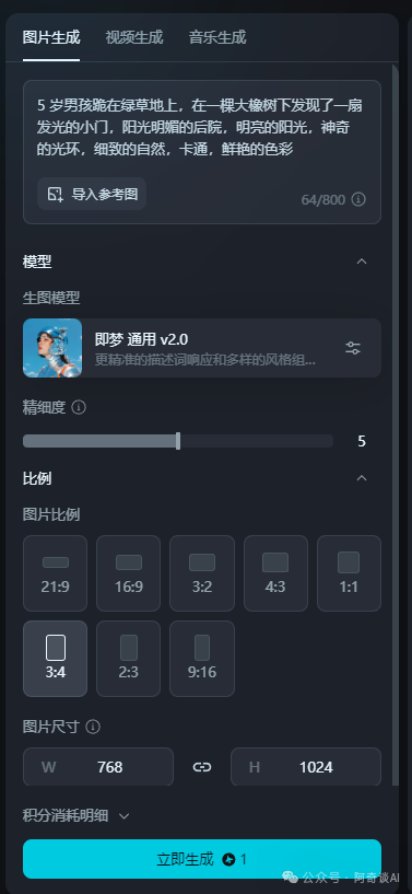 用同样的方式,生成第2-7个分镜图片(为保证人物角色一致,使用了即梦的参考图功能)。