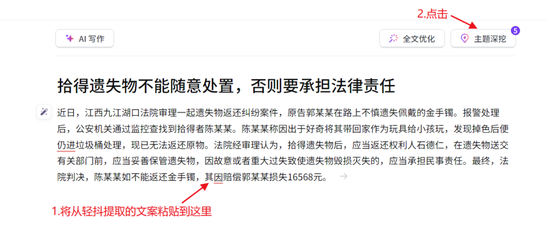 选好内容后,就将这条内容文案复制下来,交给AI工具进行改写。