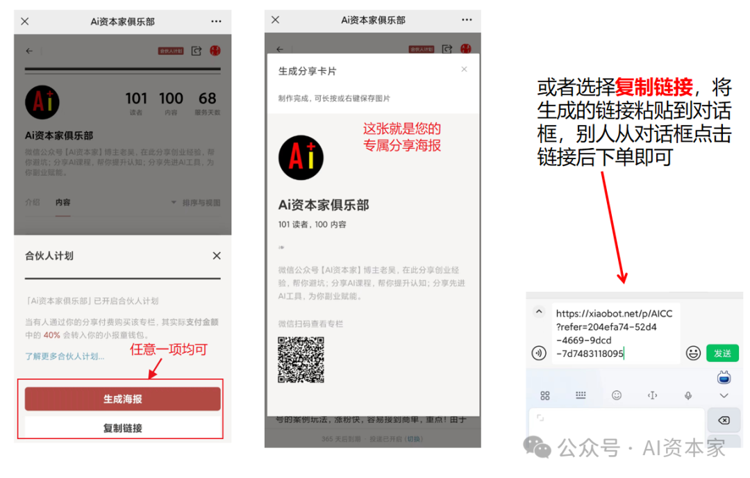 我已为各位会员朋友开通分享收益,通过您的专属分享海报分享成交后,按照成交金额的40%享受佣金收益(由小报童平台系统自动结算)。
