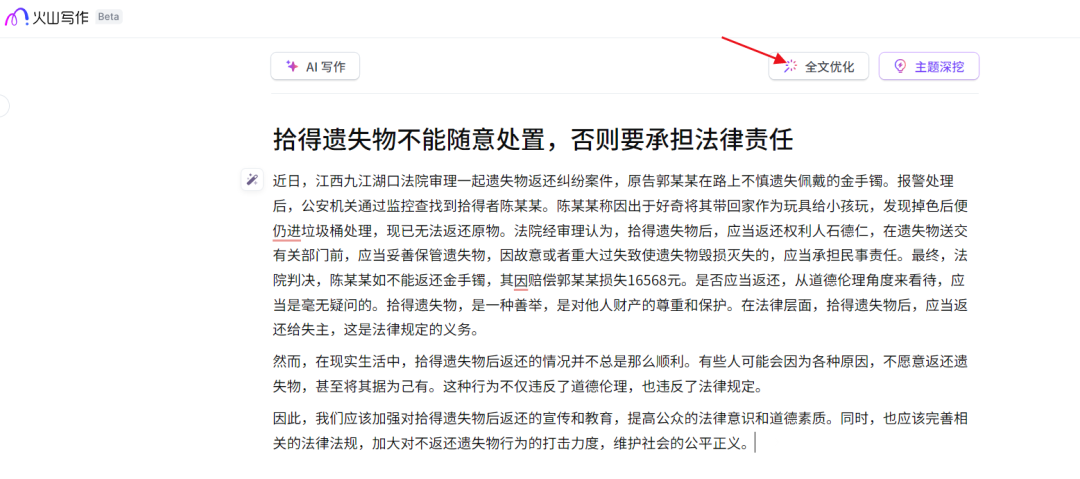 【火山写作】最牛的地方是可以帮你直接对文案进行二创洗稿,包过原创,大大提升了创作效率。