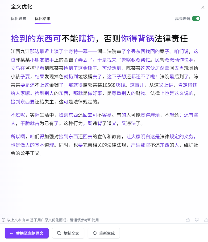 如果满意,就点替换至左侧原文,就完成了洗稿替换。