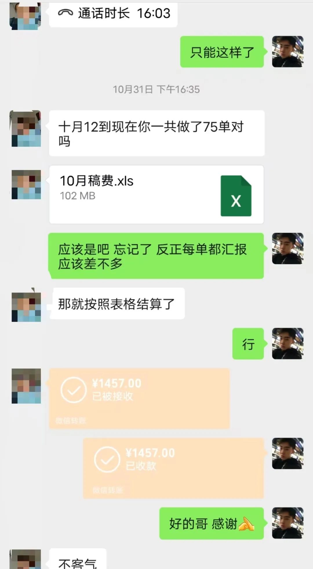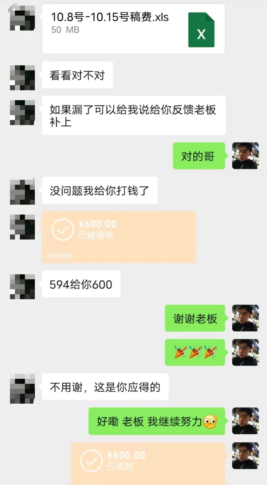 第二天开始学习,由于前期什么也不会,人家手把手教着,带着我,我这笨手笨脚一个小时做了一篇25块的文章,做完我就明白了,虽然收益也算可观,但这这需要有一个老师带着指导辅导改正,需要一个人手把手教着来做,经过商量经过人家同意后,立马派来一个小伙在人家工作室长期学习了,
