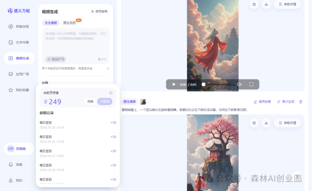 通义万相这个视频AI,每天可以领取50个积分,每次生产一个视频消耗5个积分,也就是一天可以免费生成10个作品。
