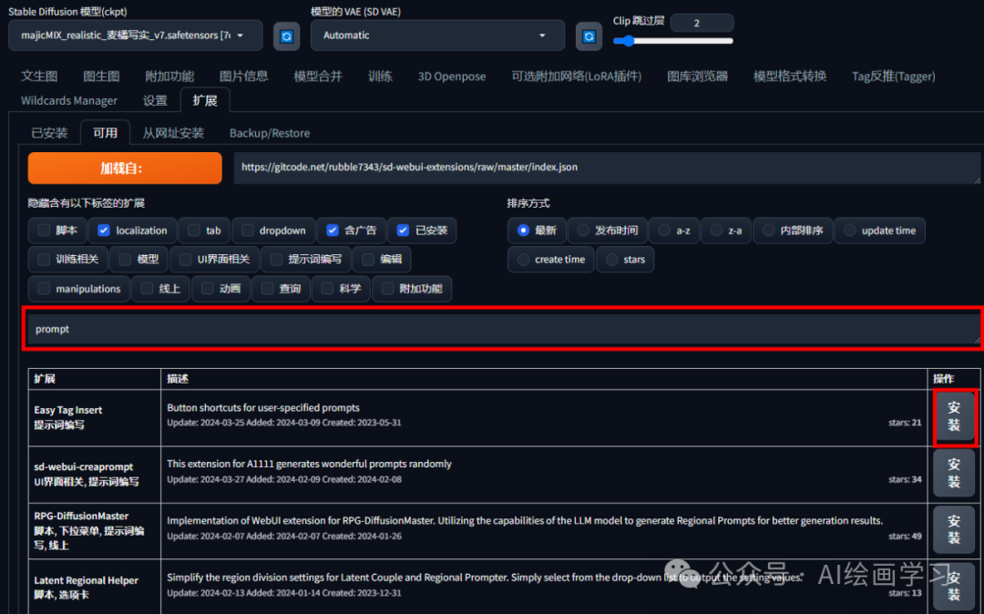 插件地址:https://gitcode.net/ranting8323/sd-webui-prompt-all-in-one