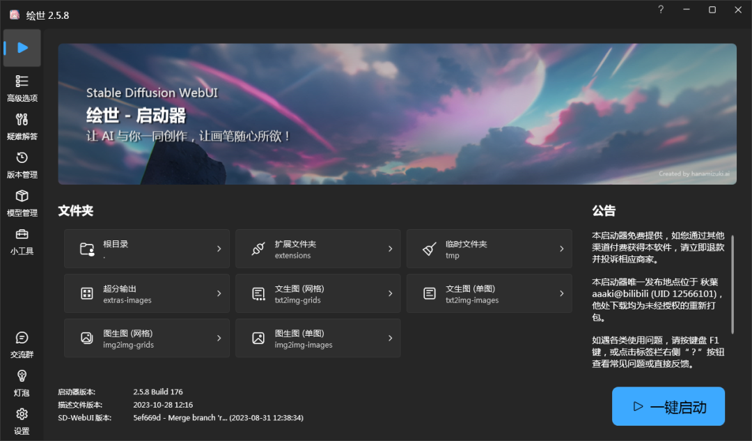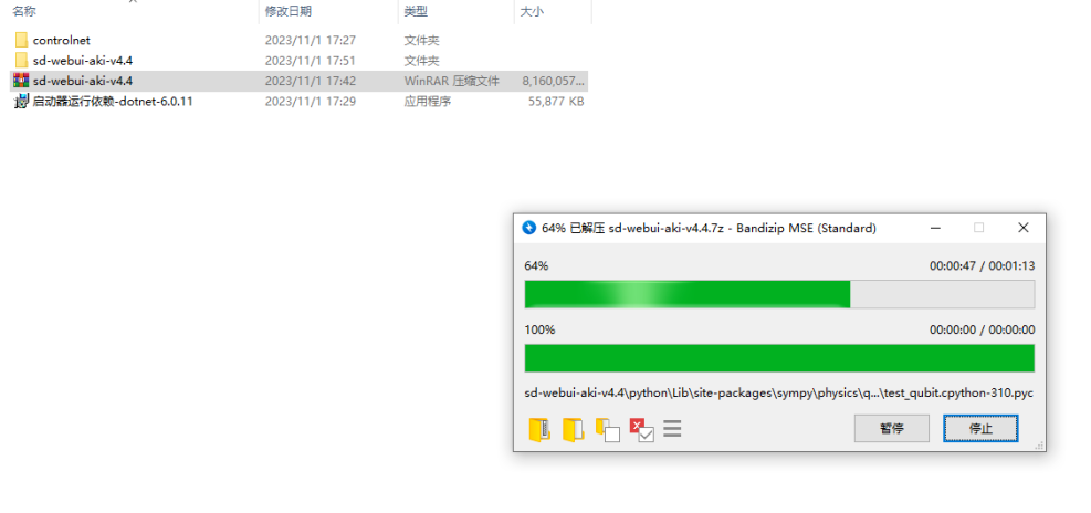 2. 解压文件「sd-webui-aki-v4.4.zip」后,然后点击安装即可进行操作。