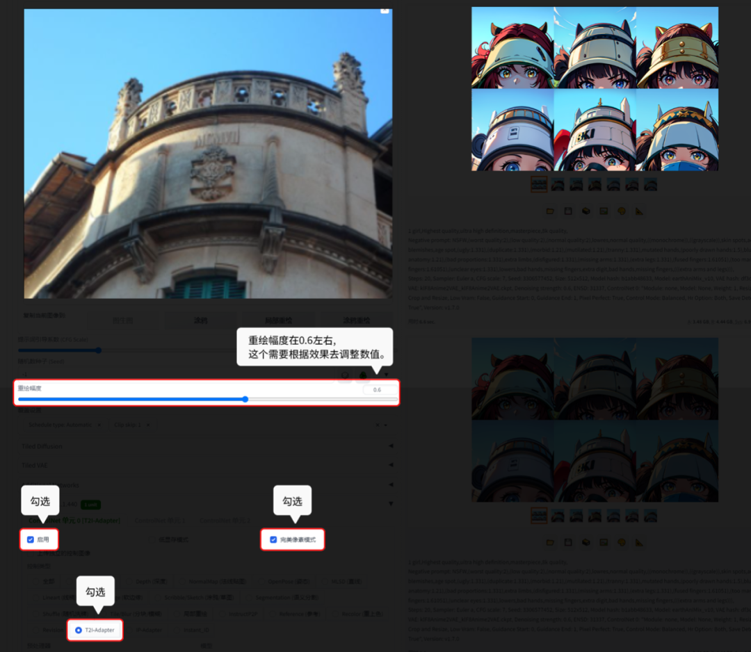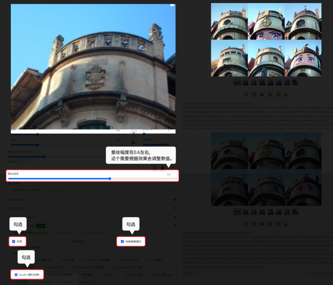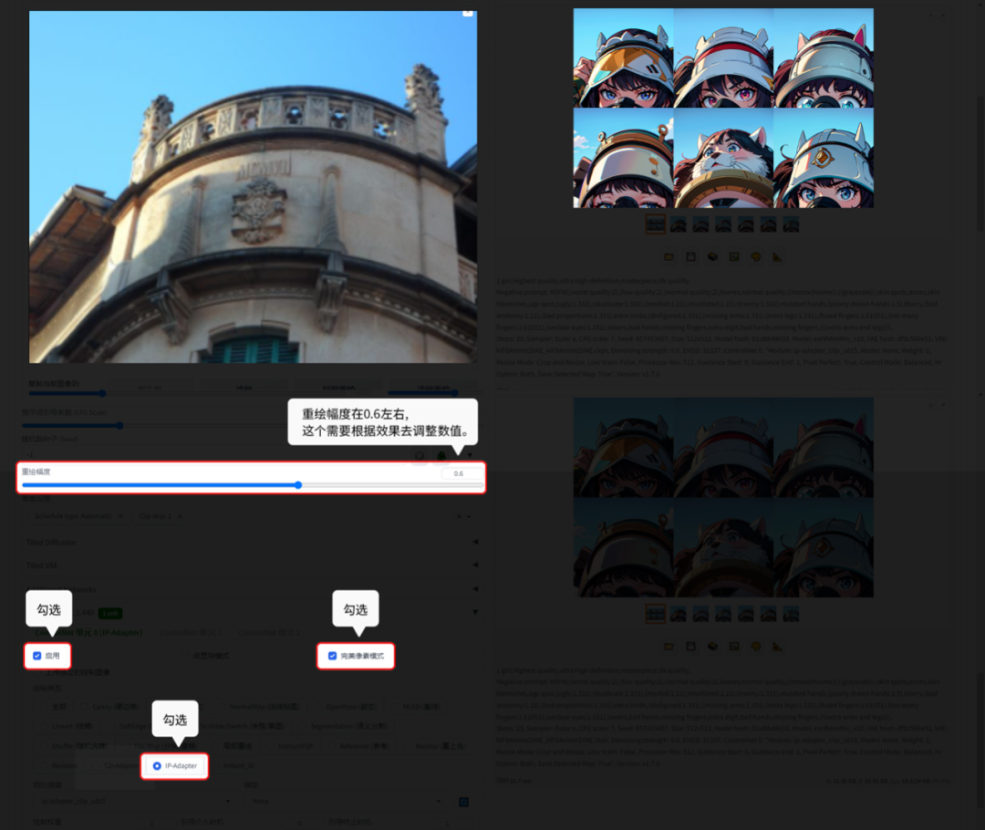 重绘幅度:重绘幅度数值越大,生出来的图就和原图的差异越大,数值越小和原图差异越小。