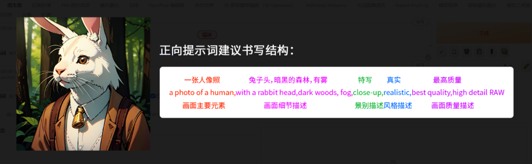 注意:避免个别词条权重过高,安全范围在1上下0.5左右,如果想要强调一个词条可以多写几个类似词条。
