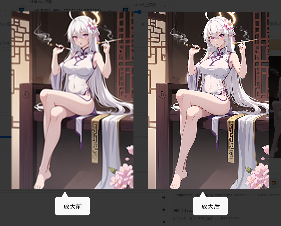效率低:【高分辨率修复(Hires.fix)】需要调参数,比较费时间。