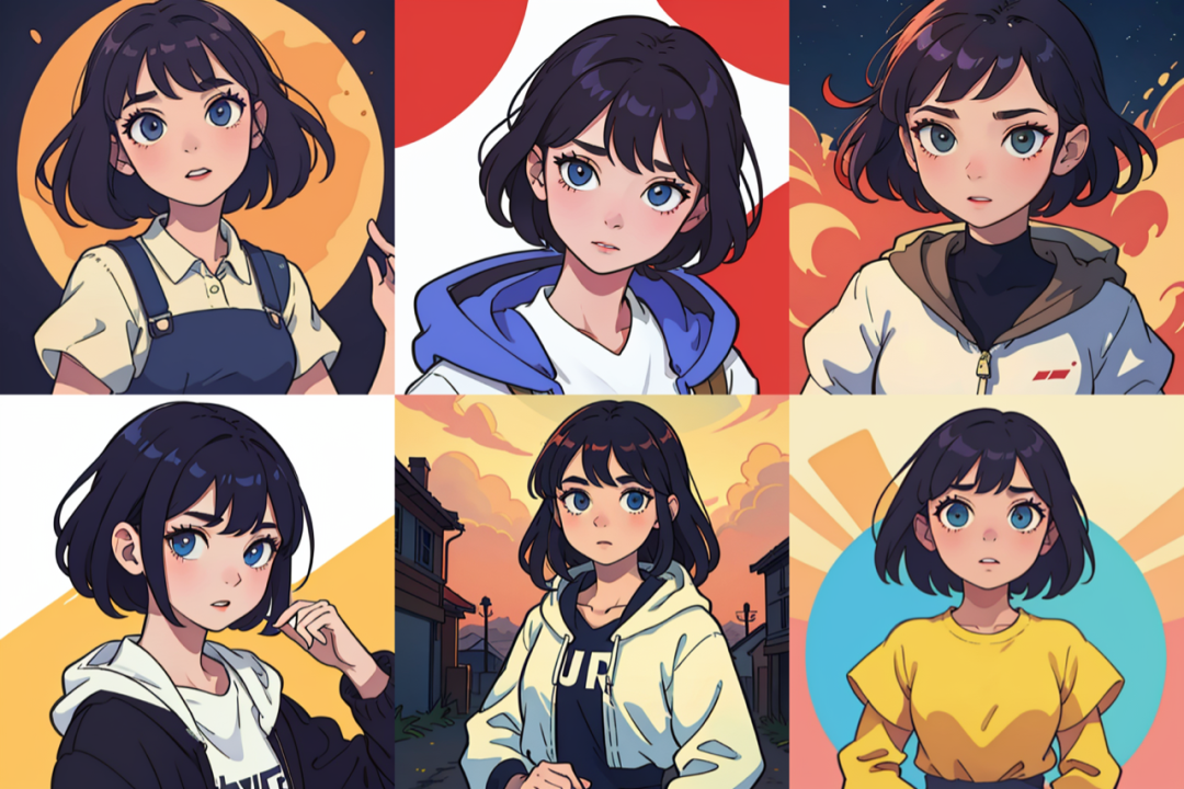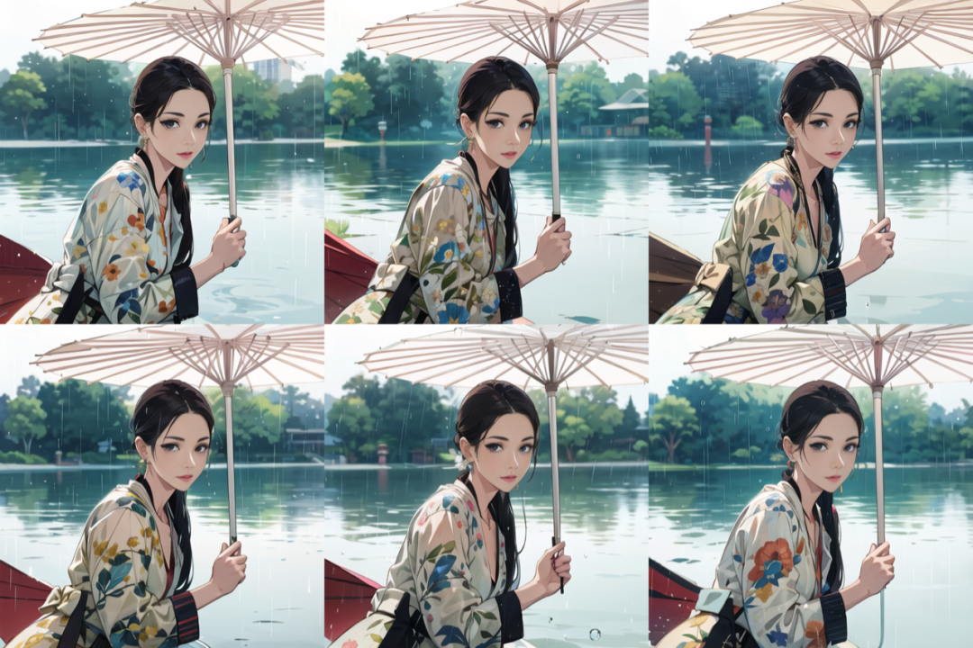 缺点: 1. 仍然受到最大显存的影响。 2. 计算速度相对较慢。 3. 偶尔”加戏“,出现莫名其妙的额外元素。 比较难生出和原画一样的图。 | 缺点: 1. 分割重乎的过程不可控(语义误导格分界线割裂)。 2. 操作繁琐且相对不直观。 3. 偶尔加戏,出现莫名的额外元素。 对于缺点解决方法:增加缓冲带,重绘幅度降低为0.4。 | 缺点: 1. 放大功能的效果不太显著。 简单,高效地生出和原图一样的图。 |