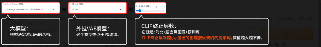 2. 大模型、外挂VAE模型、LORA模型、CLIP终止层数