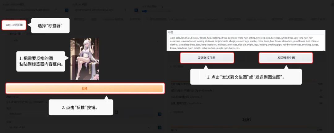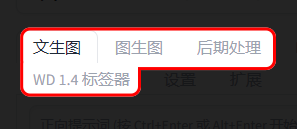 教程主要是讲我们在工作中高频使用的4个功能模块:文生图、图生图、后期处理和标签器。如下图:
