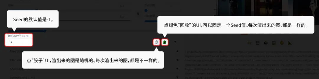 3、 点绿色“回收”的UI,可以固定一个Seed值。每次渲出来的图,都是一样的。