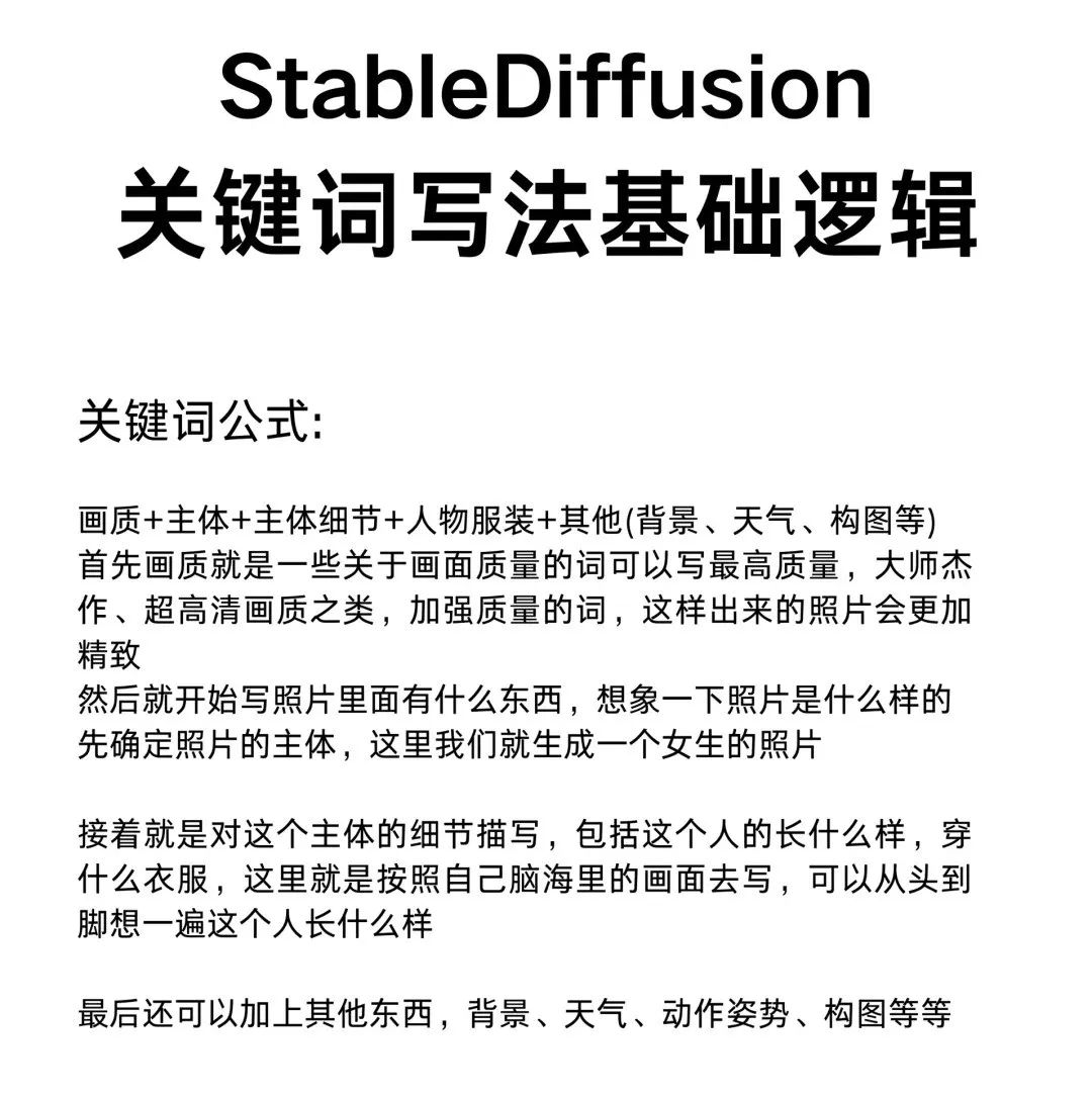 需要注意的是,相同的指令在不同的模型库和参数下,生成的输出图像可能会不一样。此外,提示词的顺序也非常重要,因为它们的顺序会影响到生成图像的权重。通常情况下,越靠前的提示词权重越大,越靠后的提示词权重越小。