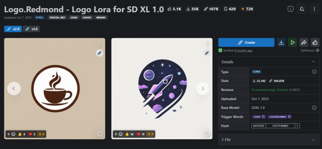 这里用到一个专为Logo设计而生的Lora:LogoRedmond。