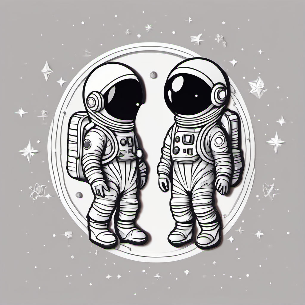 A boy and a girl in astronaut costume traveling around the universe,``4K intricate vector illustration,T-shirt design,logo,LogoRedAF,``simple background,solid white background,``<lora:LogoRedmond_LogoRedAF:1>,