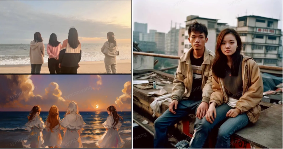 AI 绘画作为 AIGC(人工智能创作内容)的一个应用方向,它绝对是 2022 年以来 AI 领域最热门的话题之一。AI 绘画凭借着其独特创意和便捷创作工具迅速走红,广受关注。举两个简单例子,左边是利用 controlnet 新魔法把一张四个闺蜜在沙滩边上的普通合影照改成唯美动漫风,右边是 midjourney v5 最新版本解锁的逆天神技, 只需输入文字“旧厂街风格,带着浓浓 90 年代氛围感”即可由 AI 一键生成超逼真图片!