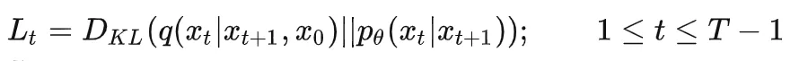 其中,q 分布是逆向过程分布,p 是模型预估分布,训练损失是求两个高斯分布的 KL 散度,即两个分布之间的差距。