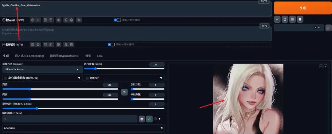 当我们输入触发词时,就会生成类似的美女