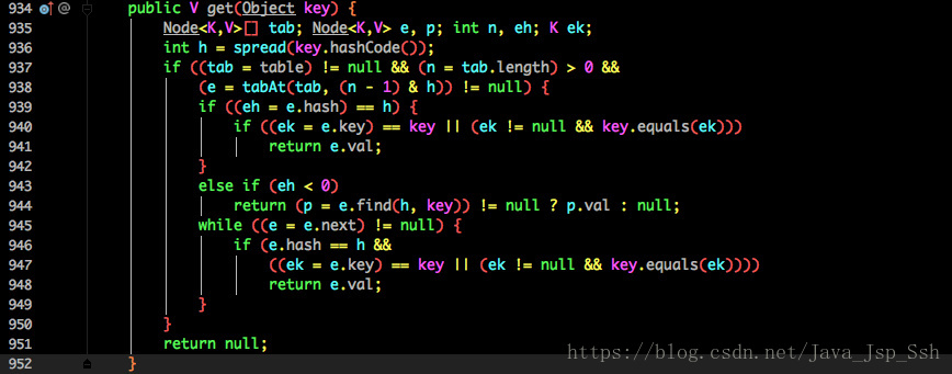 if ((s = (Segment<K,V>)UNSAFE.getObject // nonvolatile; recheck