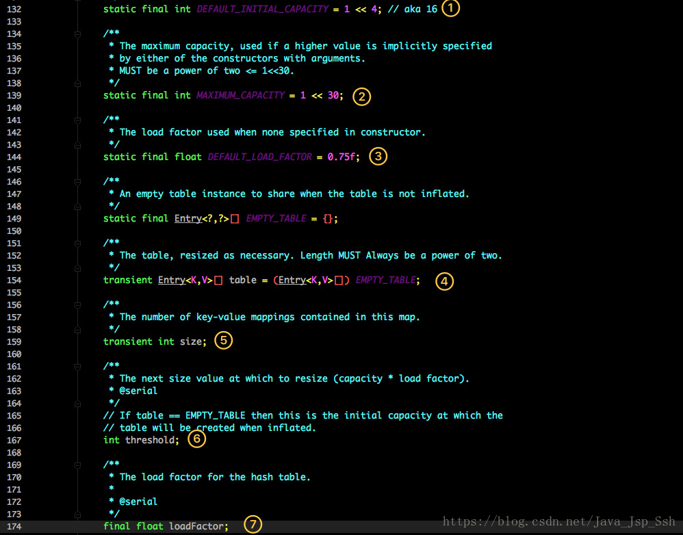 这是 HashMap 中比较核心的几个成员变量;看看分别是什么意思?