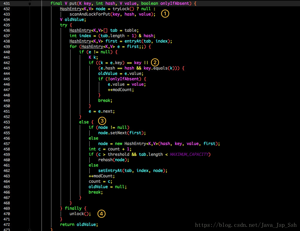 首先是通过 key 定位到 Segment,之后在对应的 Segment 中进行具体的 put。