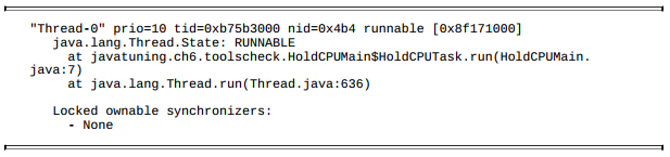 从加粗的文字可以看到,这个线程正是HoldCPUTask类,它的nid(nativeID)为0x4b4,转为十进制后正好是1204。