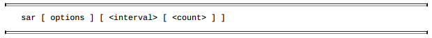 interval和count分别表示采样周期和采样数量。options选项可以指定sar命令对哪些性能数据进行采样(不同版本的sar命令选项可能有所不同,可以通过sar-h命令查看)。