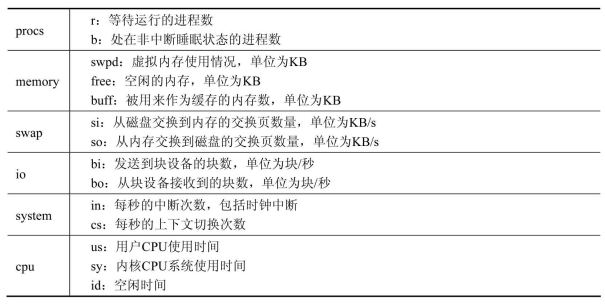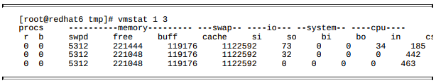 vmstat也是一款功能比较齐全的性能监测工具,它可以统计CPU、内存及swap的使用情况等信息。和sar工具类似,vmstat也可以指定采样周期和采样次数。下面的代码表示每秒采样一次,共计3次。