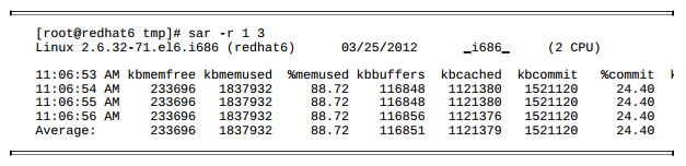 下面的代码使用sar命令统计CPU的使用情况,每秒采样一次,共采样3次。